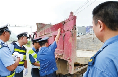 8月14日,通山路政、运管、交警、治安、特警等各部门联合启动治超专项行动,对超载、超限、非法改装等车辆进行查处。当日共查处超限车辆11台,卸货车辆8台,卸货33吨,非法改装车辆18台,切割栏板36块。