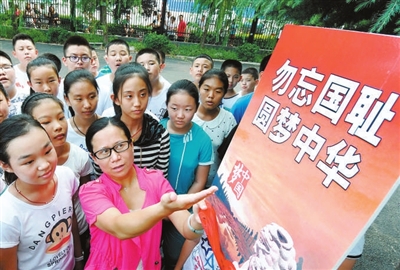 “借助纪念抗日战争及世界反法西斯战争胜利70周年的契机,对学生进行爱国主义教育,让他们知晓自己肩上的责任,能更好地把握现在的学习和生活。”授课教师东北育才学校高中部历史老师谷海波说。