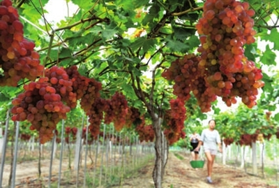 8月底,崇阳县白霓镇杨洪村铁强葡萄基地,一串串饱满的葡萄挂在枝头。2013年,白霓镇政府引进浙江老板投资建设200亩葡萄基地,年产值达1200万元以上。依托葡萄基地,该镇大力开展“生育关怀行动”,帮扶6户计生家庭致富。