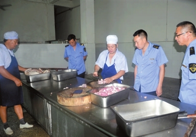 为做好秋季校园食品安全工作,严防食品安全事故发生,崇阳县食品药品监督管理局开展校园食品安全隐患排查,覆盖全县所有高校、中小学、幼儿园,确保学校食堂及周边食品安全。图为9月2日该局工作人员在县一中食堂检查。 特约记者徐功频 通讯员 徐卫平摄