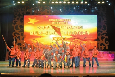 为纪念中国人民抗日战争暨世界反法西斯战争胜利70周年,崇阳县好戏连台,举办各种活动隆重庆祝。