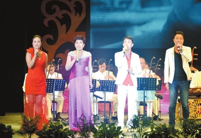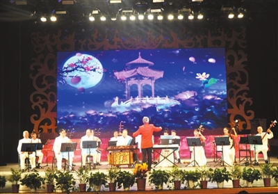 接着,中胡协奏曲《草原之夜》、笛子独奏《牧民新歌》、民乐合奏《十送红军》等无不演奏浓郁、令人耳目清新。其间,由通山音乐家协会作词、作曲并演唱的《富水情歌》,市音乐家协会主席董思宁先生一行带来的二胡齐奏《北京有个金太阳》,声情并茂,歌曲《崇阳有个回头岭》、《我家在崇阳》更是激情奔放,《二泉映月》、《绣红旗》及葫芦丝巴乌合奏《打跳欢歌》。