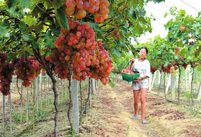 8月底,崇阳县白霓镇杨洪村铁强葡萄基地,一串串饱满的葡萄挂在枝头。2013年,白霓镇政府引进浙江老板投资建设200亩葡萄基地,年产值达1200万元以上。依托葡萄基地,该镇大力开展“生育关怀行动”,帮扶6户计生家庭致富。 特约记者 王芳芳 通讯员 王崇蓉 摄