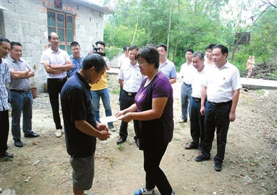 青山水库移民户胡求先身患疾病,妻子也离他而去,与年迈的母亲及4岁的养女相依为命。王艳梅叮嘱随行村干部,要采取有效措施对重点贫困户进行重点帮扶,积极落实移民政策,努力为胡求先脱贫致富创造条件。