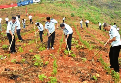 上午9时许,崇阳县委副书记、县长杭莺、县委常委宣传部长周协光、副县长石磊、县政协副主席陈熙利一行带领教育、水利、电力、卫计、组织部和扶贫办党员志愿者先锋队来到铜钟乡铜钟村白茶基地开展义务劳动。只见大家锄草的,施肥的,浇水的,一个个干得有板有眼、热火朝天。众人拾柴火焰高。不一会儿,原本杂草丛生的整块茶园就已焕然一新。