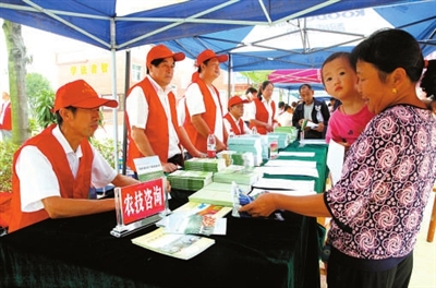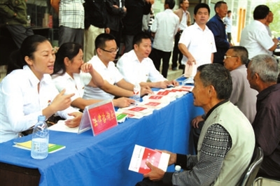 来到油市村文化活动广场,看到县卫计局、县农业局等单位的党员志愿先锋队搭起了便民服务台,专注地为闻讯而来的村民看病,认真地解答村民的农技咨询,杨良锋也深入人群中,倾听他们的诉求。