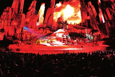 上图:大型实景神话音乐剧《嫦蛾》在香泉映月开演,吸引了不少市民和游客观赏。