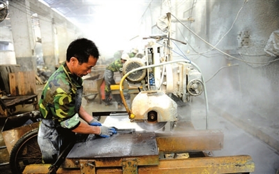 9月23日,记者在湖北大自然石业股份有限公司工艺制作车间看到,工人们正在将一块块切削平整的文化石进行水磨、雕刻,一旁,景观假山、砚台、茶具等石材工艺品雕琢完毕,形象逼真。