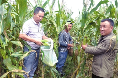 图为该局干部帮助吴城村二组村民孙权明采摘玉米。