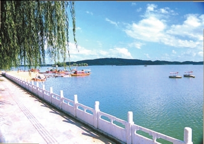 环湖望去,美景目不暇接。沿湖亭台楼阁、雕梁画舫,花草树木、垂柳依依,颇有江南山水园林风味,让人迷醉。还有弥漫着美丽传说的二乔公园、岳公亭等,让这湖碧水愈加动人。