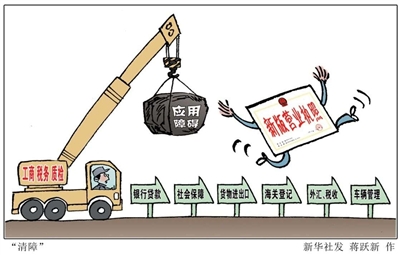 “三证合一、一照一码”登记制度改革从10月1日在全国铺开。截至当月16日,全国共颁发新版营业执照51.62万户,其中新设立企业20.8万户,变更或换照企业30.82万户。相关部门正抓紧清除新版营业执照应用的障碍,力促“一照走天下”。 新华社发