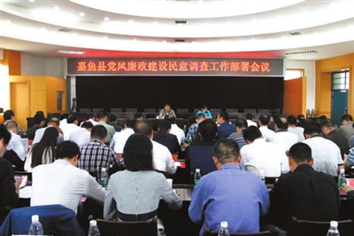 日前,嘉鱼县召开党风廉政建设民意调查工作会议,会议分析了全县党风廉政建设民意调查工作面临的形势和任务,重点安排部署迎接全省党风廉政建设民意调查的相关工作。 通讯员 李劲峰 陈琳 摄
