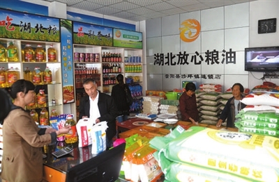 24日,湖北放心粮油崇阳县沙坪镇连锁店,人们在选购食材。经营了20多年粮油生意的店主吴迎春说,去年加盟放心粮油,有统一配送渠道,质量有保障,生意更好了。据悉,崇阳已建成一个配送中心、15家连锁店,实现了放心粮油店城乡全覆盖。