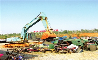 铁腕禁麻,成绩显着。截止10月26日,共查扣“麻木”88辆;组织“麻木”集中销毁活动一次,销毁存在安全隐患“麻木”56辆;拆除非法加装改装车棚6个;拘留暴力抗法“麻木”车主4人(其中残疾人1名)。现在,上班时间街上基本见不到“麻木”。