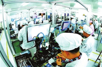 13日,鄂州灿光光电有限公司员工在生产线焊接通讯器件。该公司注重科技自主创新,研发专利产品16项,生产的千种光电通讯器件广泛运用于国内通讯企业,远销美国、加拿大等国家和地区。 (本报综合)