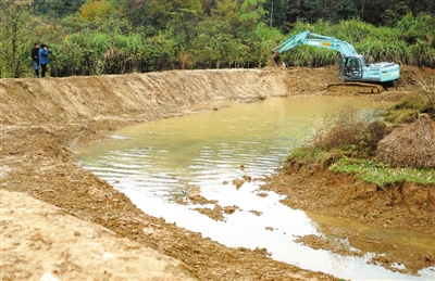 19日,通山县大路乡新桥冯村扶贫工作队在五组帮助农民挖龙虾池。 据介绍,驻村工作队树立“造血”的扶贫思路,通过规划引领,借助种养产业示范,帮助贫困户提高致富本领,增加经济收入。 记者 张大乐 摄