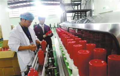 香溢城酒业试生产23日,湖北(崇阳)香溢城酒业有限公司员工在检验产品质量。