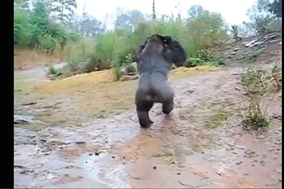 这只名叫Kimya的大猩猩,看到它的伙伴进入雨中玩闹,十分有趣。它便用手遮在头顶,在雨中采摘了一颗生菜作为食物,动作酷似人类,憨态可掬,引得周围人群阵阵发笑。