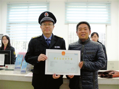 11月30日上午,咸安区食药监局局长聂选明来到区政务服务中心食药监窗口,将该局办理的首张药品经营许可证发给宁康鸿泰药店负责人。这标志着今后咸安区的药品零售经营许可不需再到市食药监局批办,在咸安区即可办理。 通讯员 阮秀平摄