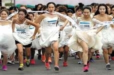 近日,泰国举行第四届“婚纱跑”活动,100多对夫妇穿着婚纱和礼服在曼谷街头“疯狂跑步”600米。