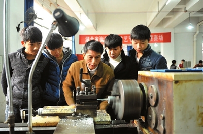 2日,崇阳县职校机械专业实训基地,学生在老师的指导下操作普通车床。近年来,该校不断推进校企合作,既提高了学生的实践技能,又为企业有针对性地培养了实用技能人才。目前该校已与47家企业在专业建设、顶岗实习、教师培养、实训基地建设等方面形成长期合作关系,学生对口就业率达95%以上。