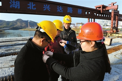 咸宁兴达路桥公司施工现场,党员干部佩戴着党徽参加劳动。公司党总支书记罗春风说,开展主题党日+活动,让他更加深入的了解党章,激发了他在新时期“做最好党员”的信心和决心。其他党员也纷纷表示,在今后的工作中要立足本职岗位,开拓创新、奋力拼搏,发挥党员的先锋模范带头作用。