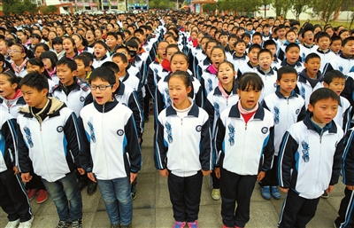 12月4日,咸安区实验中小学1300名学生在晨读活动上诵读宪法。