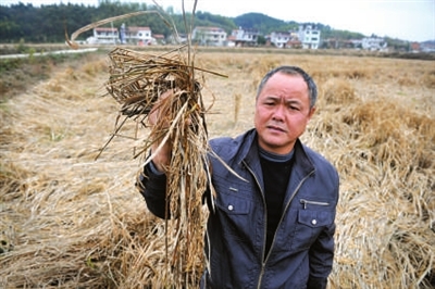 1日,咸安区高桥镇王旭村,种粮大户毛海泉看着自家倒伏的晚稻欲哭无泪。毛海泉是双溪人,在王旭村流转了400亩水田,连续两个多星期阴雨天,收割机无法下田,错过了晚稻最佳收割时间。“倒伏的晚稻占十分之一,倒伏的70%将无法收割。”毛海泉说,往年晚稻这个时间都已归仓,今年过了成熟季,稻穗杆脆弱,机械收割时抛洒率高,也将影响收成。