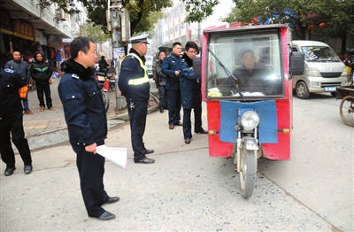 自12月5日起,崇阳县公安局、交通运输局、城市管理执法局组成联合执法组,开展为期3个月的城区交通秩序整顿,加大对“麻木车”、占道经营以及黑面的等非法营运行为的查处力度,改善城区交通秩序,提升城市形象。