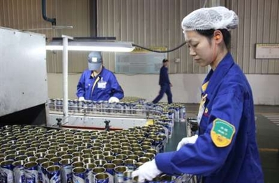 12月8日,嘉鱼元阳食品有限公司生产车间内,工人们正在抓紧生产。该公司年生产蛋白和果蔬饮料5000万罐,各种饮料易拉罐3亿套,年产值可达6亿元。 通讯员 李浩摄