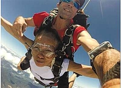 11月,两人与儿子来到澳大利亚后,决定进行“一生都难忘”的旅行——跳伞庆祝金婚。顾全平给自己写了一个心愿清单,其中之一就是跳伞。