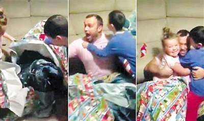 据当地媒体报道,海军爸爸把自己“打包”成圣诞礼物,让两个萌娃又哭又笑惊喜万分,这段温馨视频在脸谱上获得超过300万的点击率。