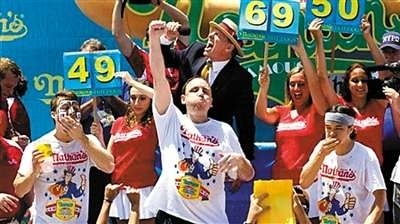 世界排名第二的美国大胃王切斯特纳特日前打破了自己保持的世界纪录,在8分钟内吞下了重达5.56公斤的酱蘸虾。据报道,32岁的切斯特纳特在美国印第安纳波利斯举行的竞食赛事中,打破自己去年创下的狂吞4.73公斤虾的旧纪录。他赛后表示:“这是我参加的最健康比赛之一。”