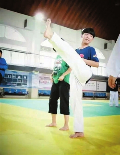 金铭润如愿穿上了心仪已久的跆拳道服。他格外懂事,倔强,刻苦,不服输。