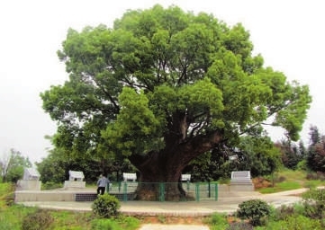 更为传奇的是,古樟历经多种劫难仍生机勃勃。抗战时期,鬼子的飞机空投炸弹,将古樟炸得四分五裂,但这棵古樟仍顽强地活下来。树根部可以看到火烧痕迹并留下了一个大缺口,这个缺口可容纳一桌人围坐休息。