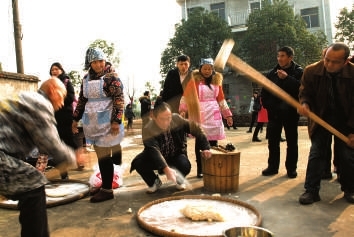 “平常只是在超市里买过糍粑,怎么做成的,今天还是第一次见,感觉很有意思。”在武汉一家企业上班的黄先生体验完打糍粑后,擦了擦额头上的汗珠,高兴地说道。