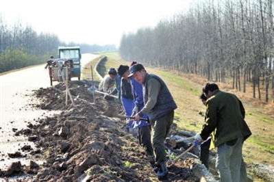 2015年12月底,嘉鱼县长江干堤四邑公堤上,工人们在路边忙着挖土、填石。据悉,市河道堤防管理局投入37万元,对全堤多处损毁的路肩路沿石共6.1千米进行修复施工,以保证长江干堤防汛通道整洁顺畅。 记者 陈红菊 通讯员 敖琼 杨志 摄