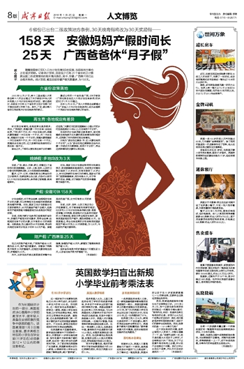 158天 安徽妈妈产假时间长 25天 广西爸爸休“月子假”