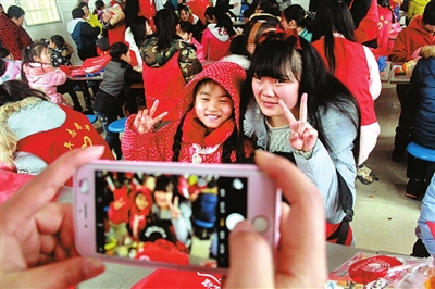 在嘉鱼县全面打响精准扶贫大会战之际,团县委组织广大青年志愿者投身精准扶贫一线战场,聚焦建档立卡的6-18周岁贫困留守少年儿童,力争通过3年的努力,实现贫困留守少年儿童关爱服务覆盖。图为青年少志愿者与帮扶对象合影。