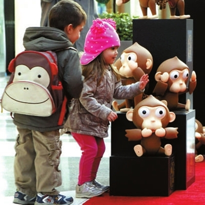 昨日,为迎接即将来临的中国农历猴年,温哥华的艺术家以猴子作主题,运用200只猴子造型的雕塑组成大型的装置艺术,展示在当地一个商场内供民众欣赏。据新华社