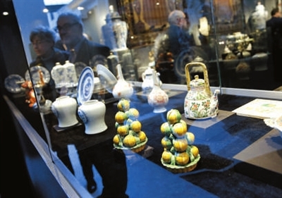 昨日,在比利时首都布鲁塞尔举行的第61届布鲁塞尔艺术品展上,一家古董行展示中国瓷器。布鲁塞尔艺术品展是欧洲知名艺术品和古董交易展会。据新华社