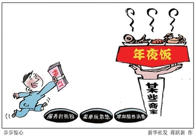河北省工商局有关负责人表示,消费者预订年夜饭时,要明确预订项目,包括所订的桌位、消费的时间、菜品详细内容和价格、收取费用等,避免服务打折扣、菜单玩忽悠、增加隐性消费等问题出现。