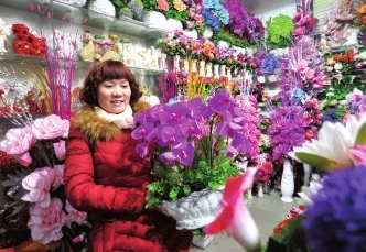 5日,咸安老街和温泉步行街鲜花店格外喧哗,生意火爆。随着生活水平的提高,鲜花消费已成为一种时尚,在佳节到来之际,市民在购买年货时不忘买束鲜花装扮家居,喜迎猴年新春。 记者 张大乐 陈红菊摄