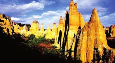 四川西昌黄联关土林:黄联关镇因山坡上黄连树多而得名。在遥远的过去,这里是南方丝绸之路的要隘。穿镇而过,沿沙沟上行。首先见到的是明镜般的金鸭塘。快至尽头一个急转弯,眼前豁然开朗,土林——黄色世界,呈现在马蹄形的山凹里。