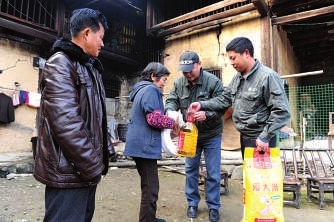 4日, 春节前夕,国网崇阳县供电公司员工在港口乡大东港村一组为贫困户吴念强家送去大米、食用油和新年祝福。