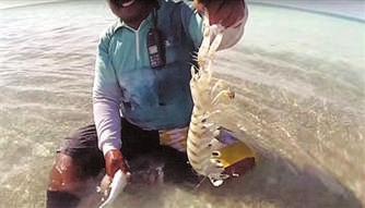 澳大利亚有一种凶猛的虾,长达12英寸(约30公分),爪子极为锋利,能够打破玻璃。然而,当地渔夫却有着精湛的技术和令人钦佩的胆量,能够徒手捕捉这种虾。这种虾因其锋利的爪子被当地人称为“手指分离器”,能够打破水族馆式的厚重玻璃。渔夫会在这些虾的洞穴上方轻轻叩击水面,等它们浮上来之后,再用手指猛地捏住它的爪子,把它提出来。