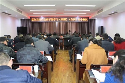 17日,嘉鱼县纪委监察局组织全体纪检监察干部开展《中国共产党廉洁自律准则》和《中国共产党纪律处分条例》知识集中测试。