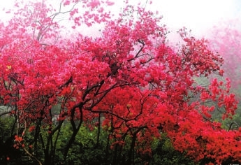 杜鹃花又名映山红,花开时节,漫山尽赤、漫天飘红,叫人分不清哪是花,哪是霞,哪是天光,哪是山色。难怪诗魔白居易会惊叹“闲折两枝持在手,细看不似人间有”。