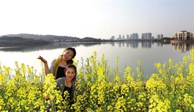 3月4日,嘉鱼三湖连江九号垻,成片茂盛油菜花,吸引踏春游人,蓝天白云、青山绿水、小桥流水,现代城市气息与田园风光融为一体,让人流连忘返。