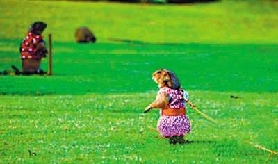 近几年,曼谷市民流行饲养土拨鼠,饲主还会将宠物装扮成警长或小公主模样,在公园草地上插下一根木棒,让系上绳子的土拨鼠可以在有限范围内任意活动,并与其他爱好者分享饲养心得。